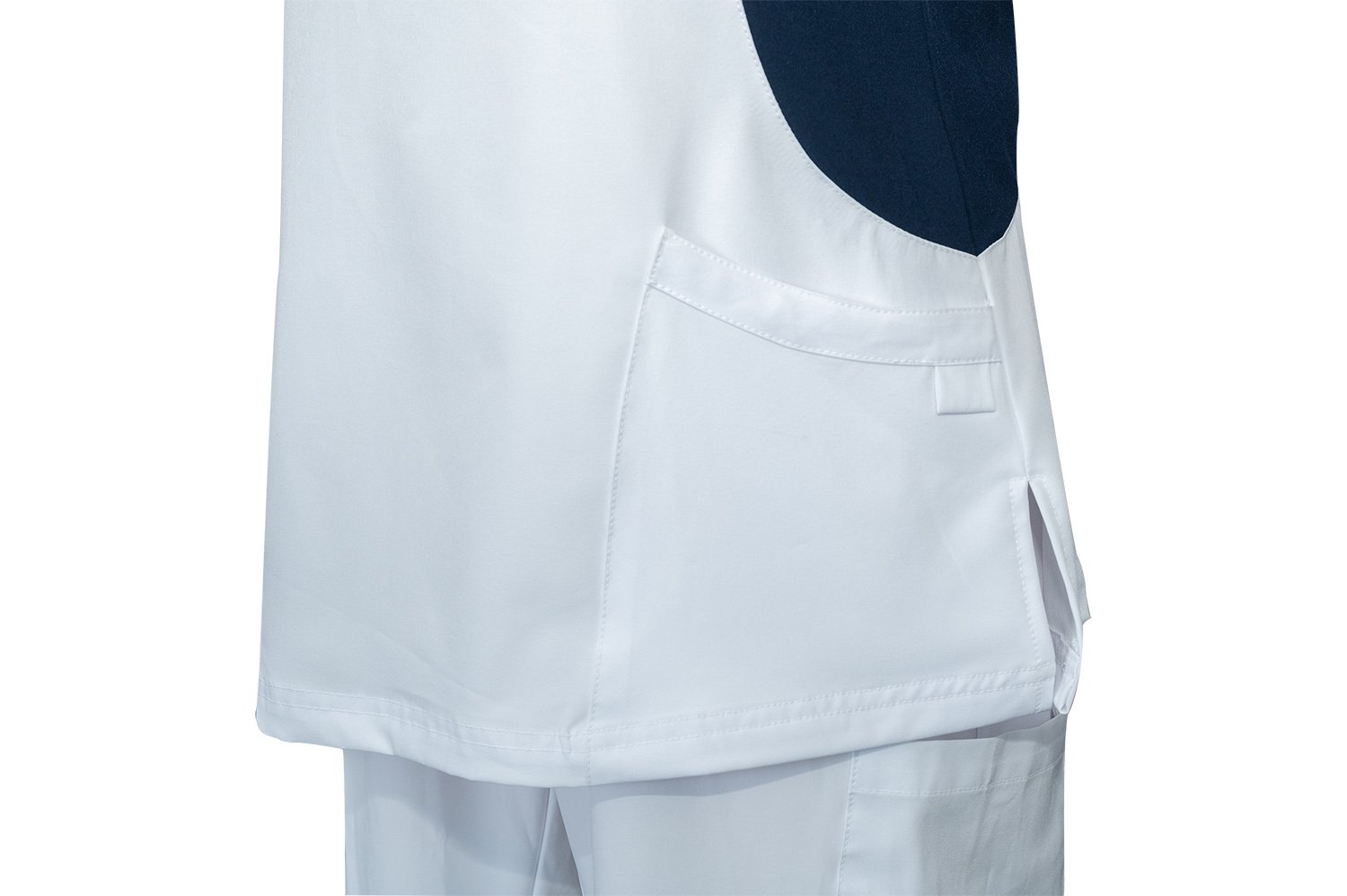 Contrast side panels with slimming effect.